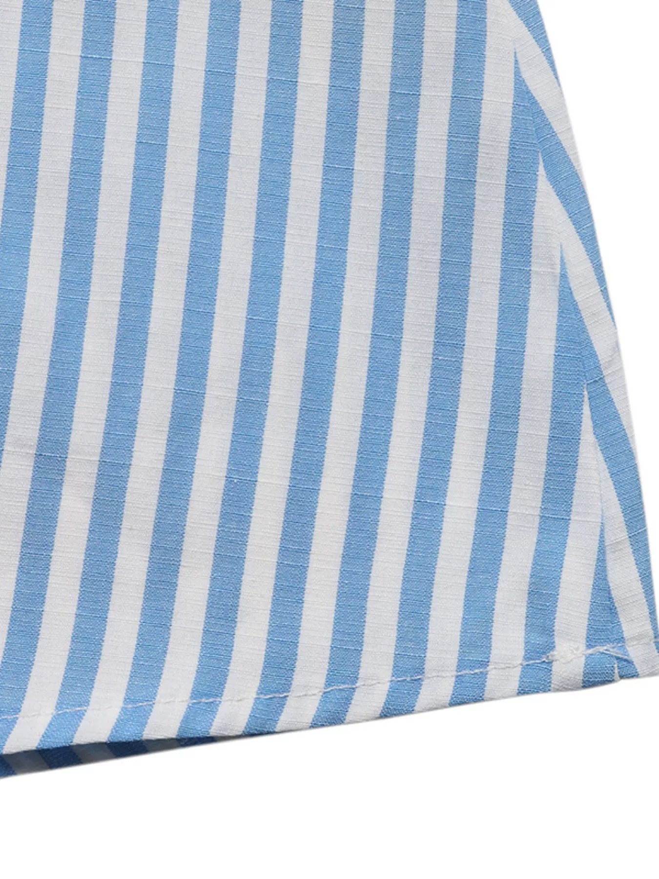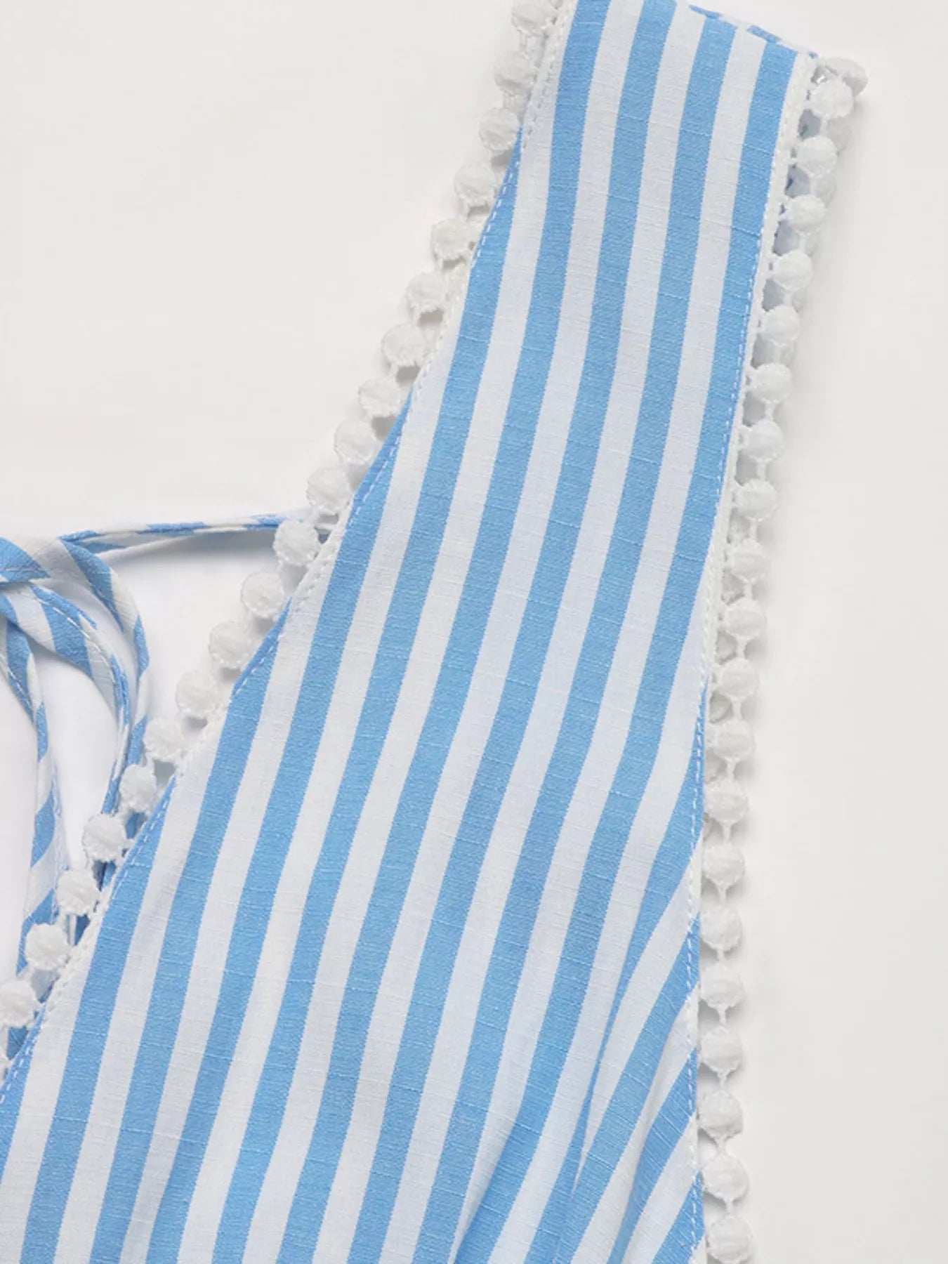 Striped Pom-Pom Trim Tie Front Sleeveless Mini Dress