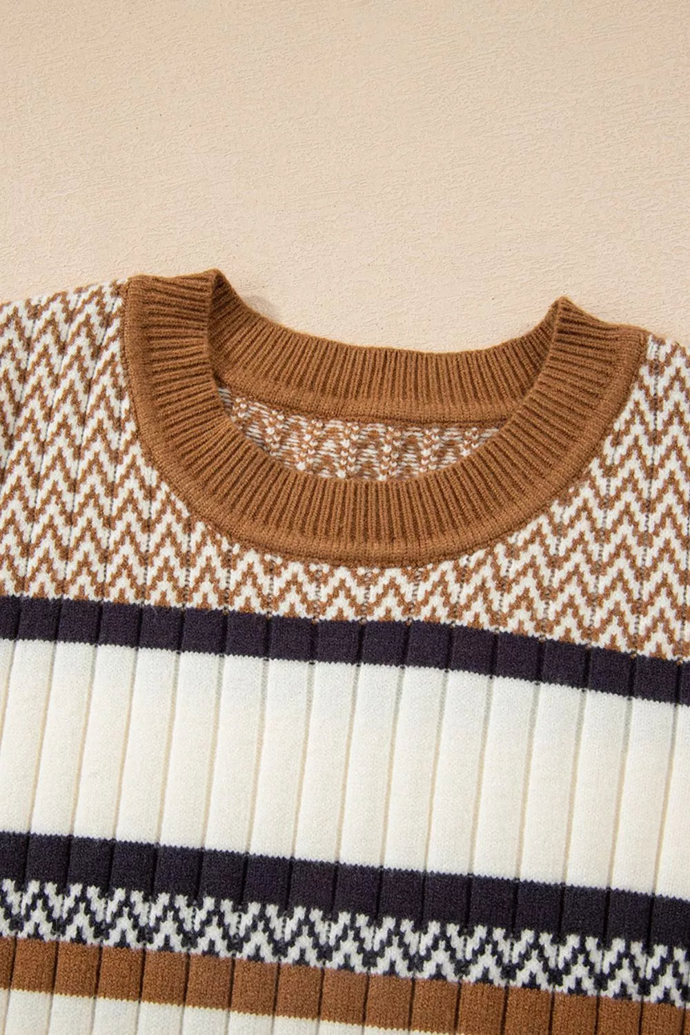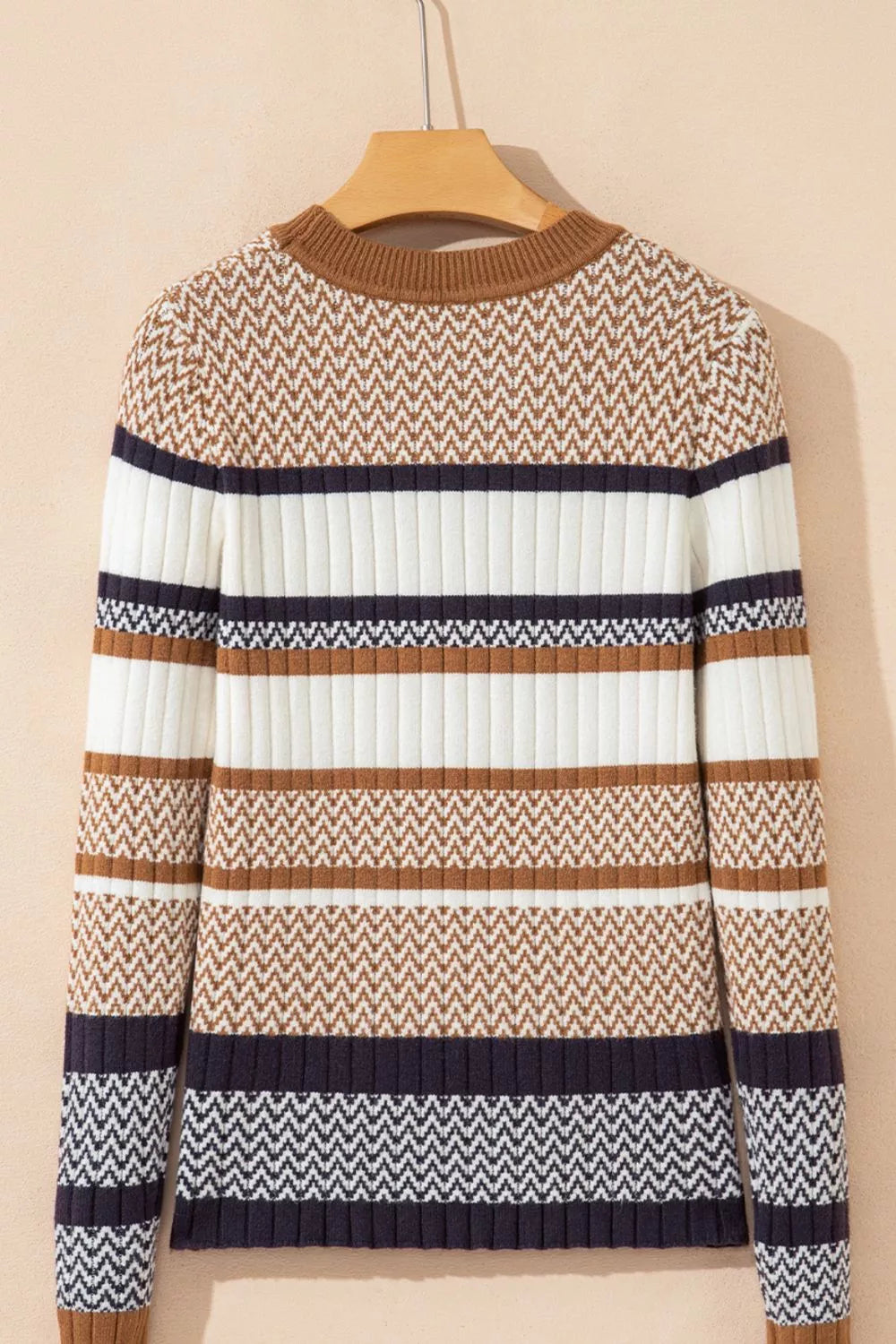 Stripe Stylish Pattern Knitted Ribbed Trim Slim Sweater