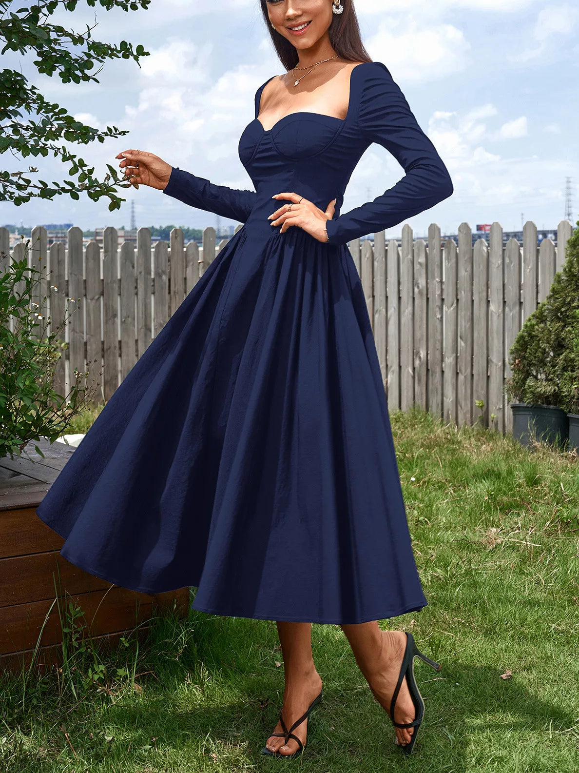 Sweetheart Neckline Long Sleeve A-Line Midi Dress